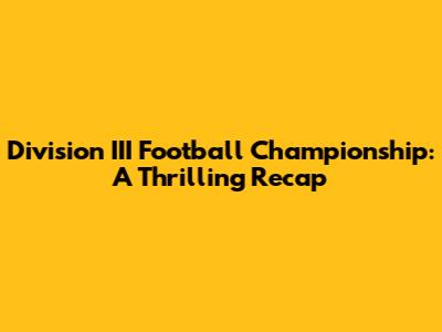 Division III Football Championship: A Thrilling Recap