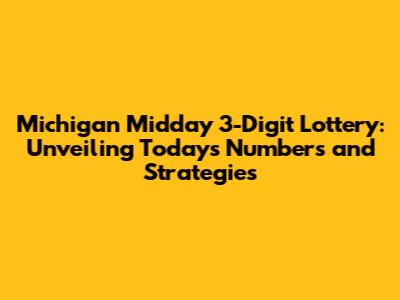 Hey lottery enthusiasts! Are you ready to dive into the exciting world of the Michigan Midday 3-Digit Lottery? If you're anything like me, the thrill of checking those numbers and dreaming of a win is something special. In this article, we'll explore everything you need to know about today's Michigan Midday 3-Digit Lottery numbers, providing you with the latest results, insightful tips, and strategies to potentially boost your chances. So, grab your tickets and let's get started! We'll cover recent winning numbers, how to play, and some clever strategies to give you an edge. Let's get this show on the road, shall we?