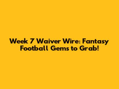 Week 7 Waiver Wire: Fantasy Football Gems To Grab!